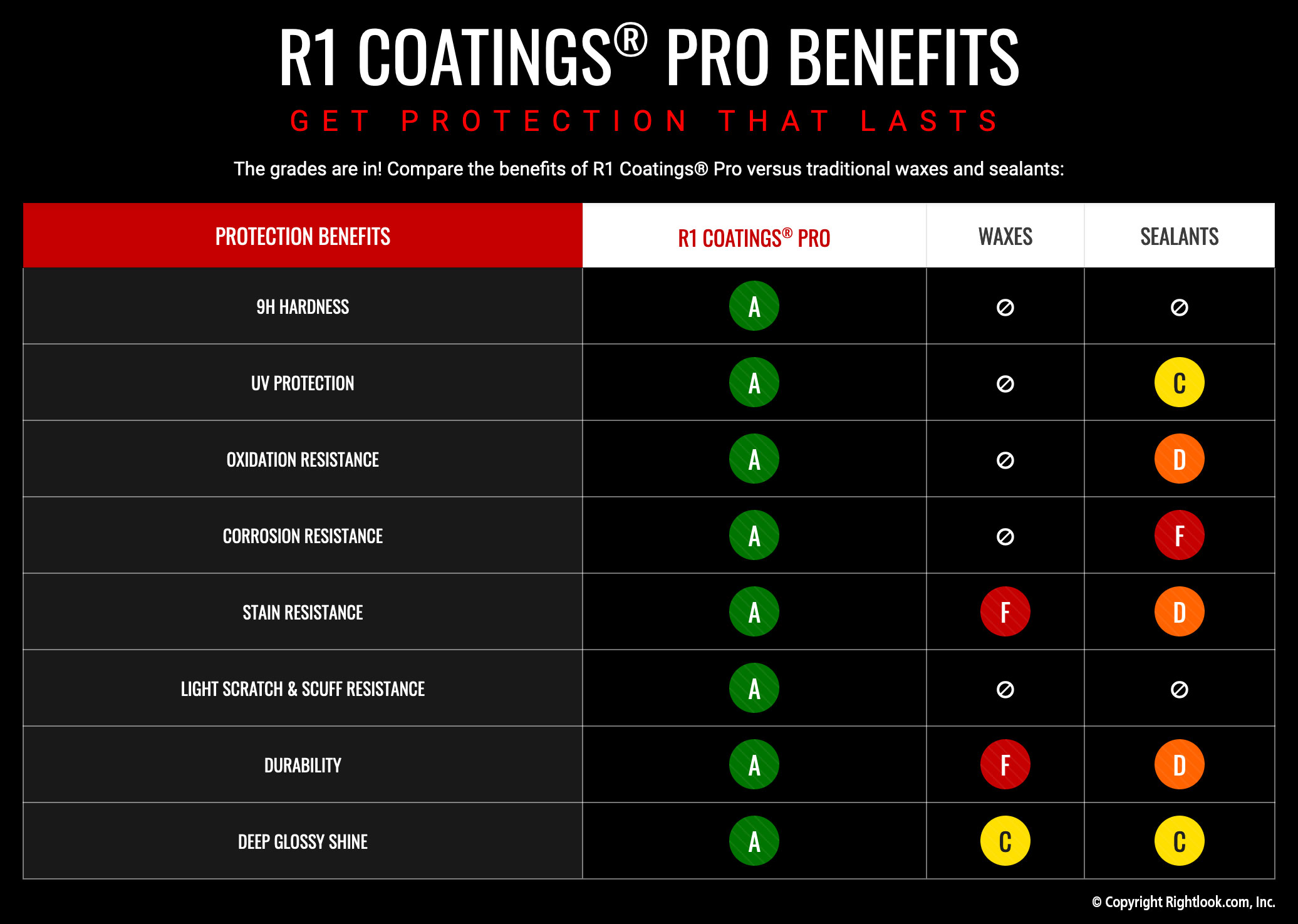 The grades are in! Compare the benefits of R1 Coatings® Pro versus traditional waxes and sealants: